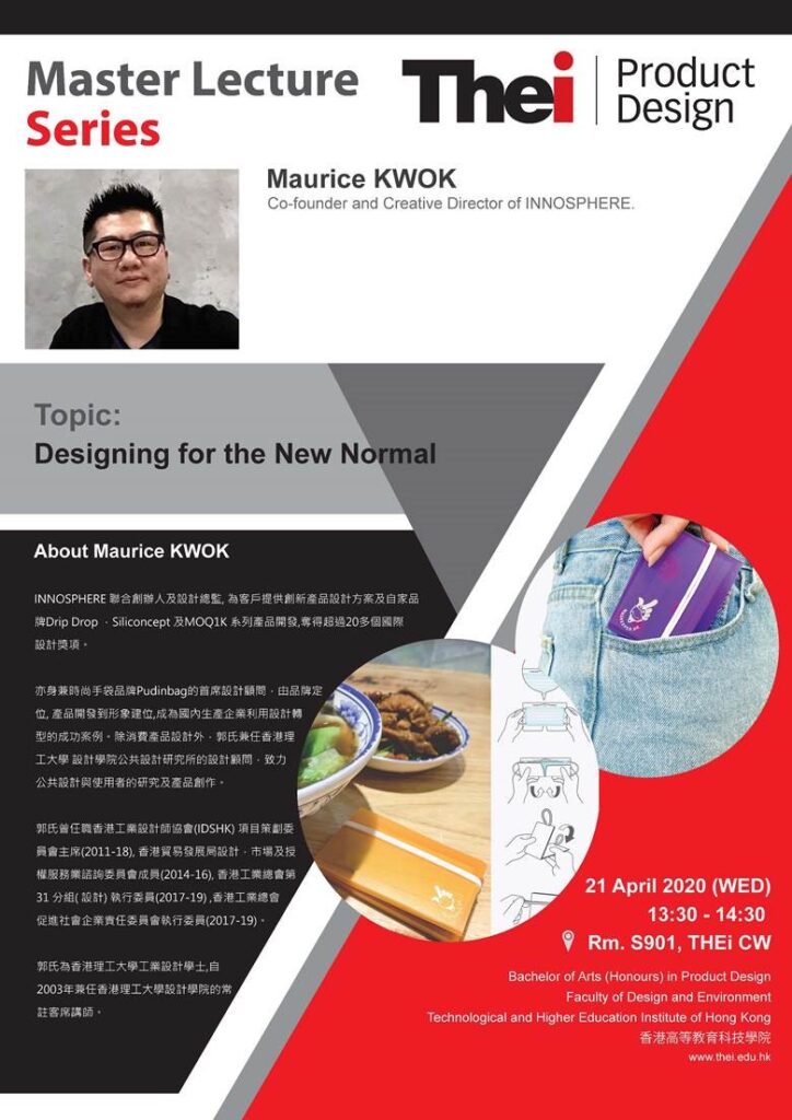 You are cordially invited to attend the Master Lecture: Designing for the New Normal which is organized by Product Design.