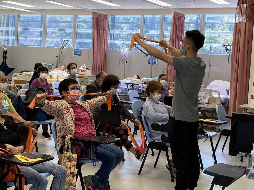「強肌健肌 營動合一」計劃由2021年2月至9月進行,旨在為葵青區內年滿60歲以上的長者進行肌少症篩查和提供相關治療。「肌少症」是指全身普遍的骨骼肌重量及功能持續下降,患者須透過接受營養及物理治療來促進康復。在計劃期間,同學們在講師李潔怡註冊營養師的帶領下,為老友記測量手握力及進行身體分析,並提供一連串的營養治療、物理治療及椅子舞訓練,使他們更關注營養膳食及定時運動的重要性,從而預防肌少症。