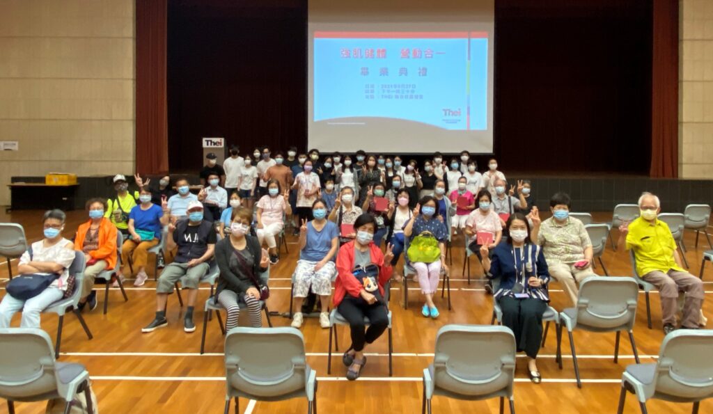 由THEi 營養及健康管理(榮譽) 理學士課程主辦的「強肌健體 營動合一」畢業典禮,於2021年9月27日下午順利舉行。出席人士包括相關業界代表、修讀課程的同學們,以及早前參加此計劃的長者。典禮期間,除了表揚一眾老友記在「強肌健體 營動合一」計劃下的學習成果,計劃人員亦不忘與長者互動,重溫強化肌肉及均衡飲食的知識,典禮在一片歡笑聲中完滿結束。