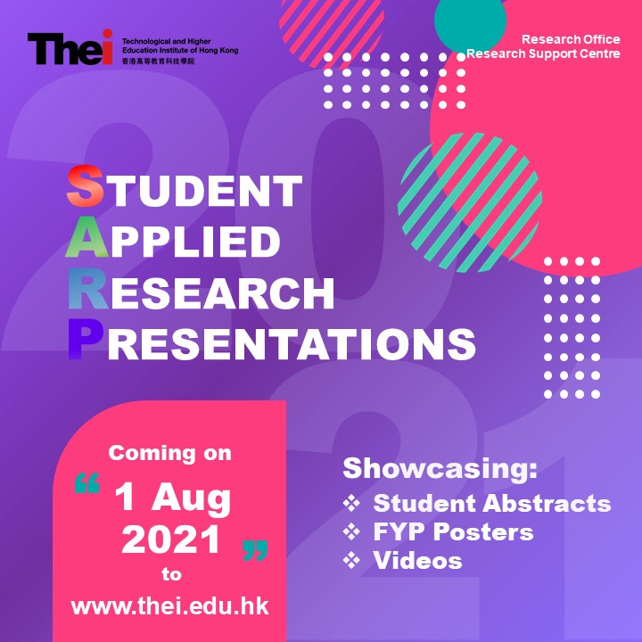 You are cordially invited to view online the THEi Student Applied Research Presentations 2021. Research posters and video presentations on various contemporary topics by THEi’s final year students will be on display on the THEi website. You will also be able to vote online for your favourite poster and video. Students whose presentations receive the highest number of vote will be awarded. Voting will be opened from 1 August 2021 (Sun) until 10 August 2021 (Tue).
