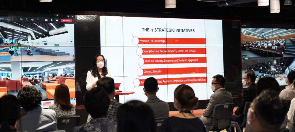THEi Staff Forum 2021 was held on 31st May, 2021 at the Exhibition Hall and broadcast to THEi Learning Commons and the Tsing Yi campus. In the forum, Prof Christina HONG, the President, reviewed THEi’s achievements in the past year and elaborated on the strategic initiatives for AY2021/22. Deans shared their work plans for the coming year, whereas Dr Will MA, the Head of Learning Commons & Digital Innovation and Mr Chuck KUONG, the Brand, Marketing and Communication Manager provided the latest development on THEi’s digital transformation strategies and upcoming promotional campaign for non-local student recruitment respectively.
